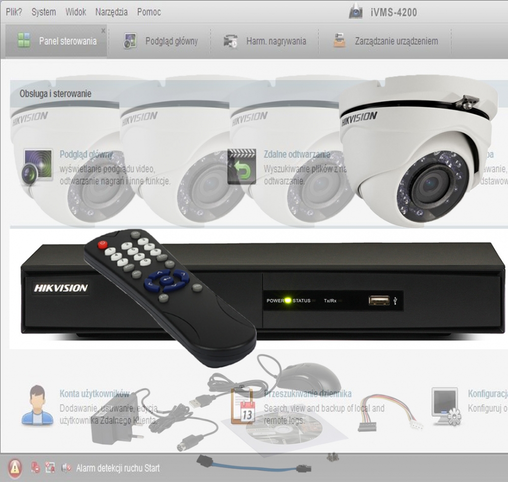 - Monitor stanu sieci LAN, kamer oraz dysków.